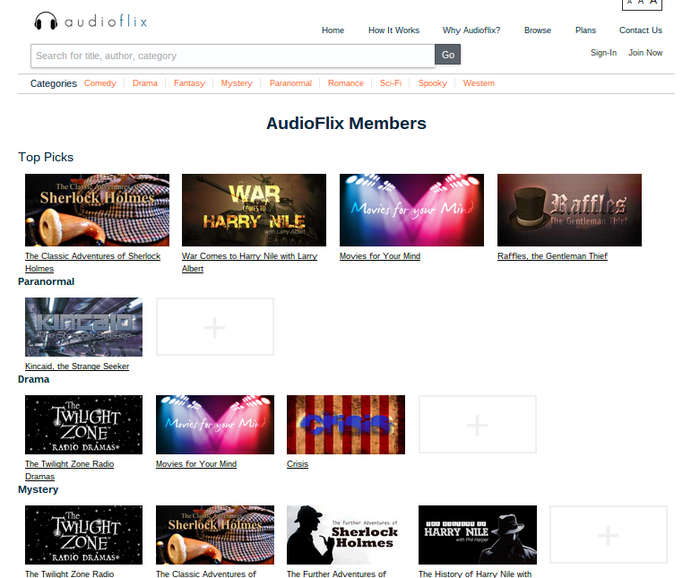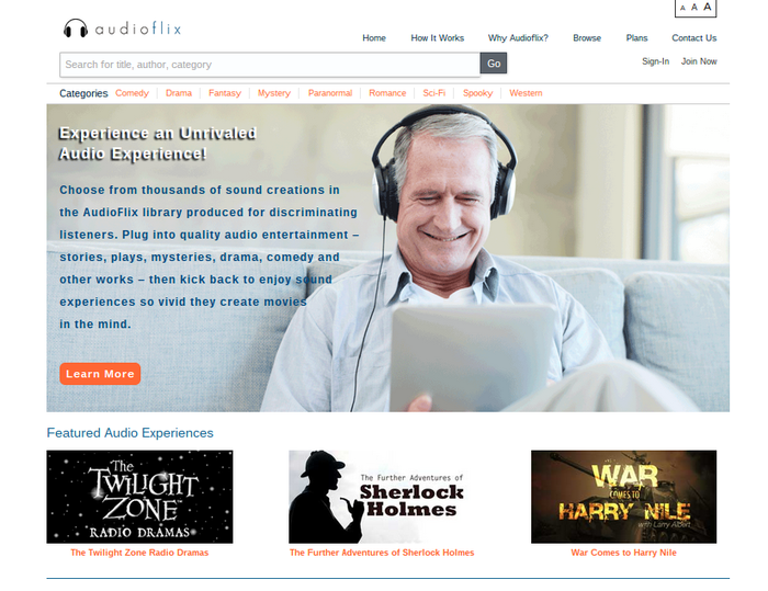 Al respecto de cómo se ofrece y como parece ser la tendencia dominante, es un servicio de suscripción que por una relativamente módica cantidad al mes ($12.99) tienes acceso ilimitado a todas las "audiopelículas" y cualquier otro contenido que se ofrezca. El contenido te puede ser recomendado o puedes navegar por las distintas secciones para encontrar el que sea de tu gusto, pudiendo crear también tu propia biblioteca de contenidos.