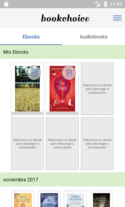 Yendo un poco más al detalle de qué es Bookchoice y desgranar cuanto de parecido tiene con Spotify, decir lo primero que se define como un club de lectura en el que cada mes sus expertos seleccionan ocho títulos para que los miembros puedan disfrutar tanto los libros (en formato ebook) como los audiolibros correspondientes a través de la app de Bookchoice, que está disponible tanto para Android como para iOS. Decir que los títulos de cada mes están disponibles durante un año (tampoco hay que agobiarse) para poder descargarlos a la app. Eso si, una vez superado el año los títulos (sea en ebook o en audiolibro) desaparecen y dejan de estar disponibles.